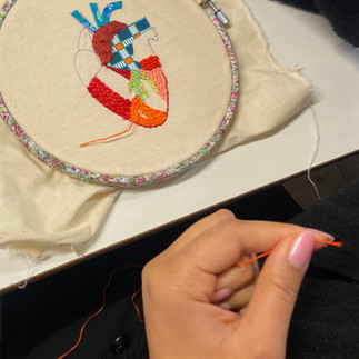 Tu apprendras plein de points de broderie contemporaine pour repartir avec les bases et la liberté de créer tes propres œuvres : des tableaux, des broches ou pimper tes habits!
